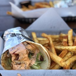 One of my top 2 favorite restaurants in South Lake Tahoe! I always have to get the lamb gyro. This time I also tried the Lamberger and I was blown away. The award winning fries are to die for! The young lady working mid day mid/late June 2024 was a lot of fun to order with. We tried the mezzka platter for the first time and really really loved that too. The vibes are laid back, and this visit we had to eat here TWICE!! we ate once out front with our dogs and once in back area with shade!